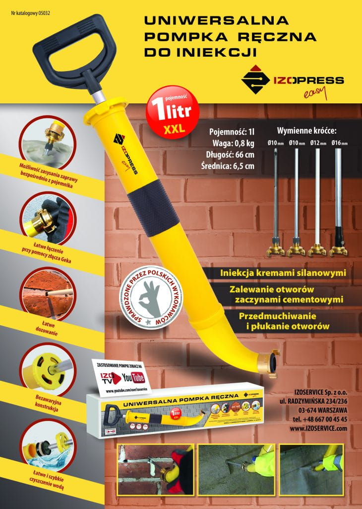 Uniwersalna pompka Izopress Easy do iniekcji, zalewania otworów, przedmuchiwania i płukania otworów ze złączem GEKA