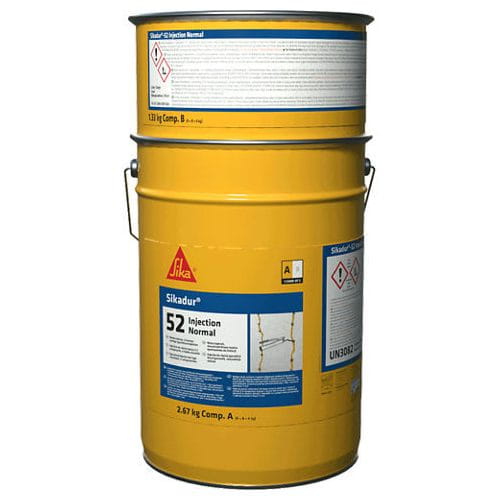 Sikadur 52 Injection Normal jest dwuskładnikową, epoksydową żywicą iniekcyjną, o niskiej lepkości i normalnym czasie przydatności do stosowania, opracowaną specjalnie do iniekcji ciśnieniowej i grawitacyjnej.